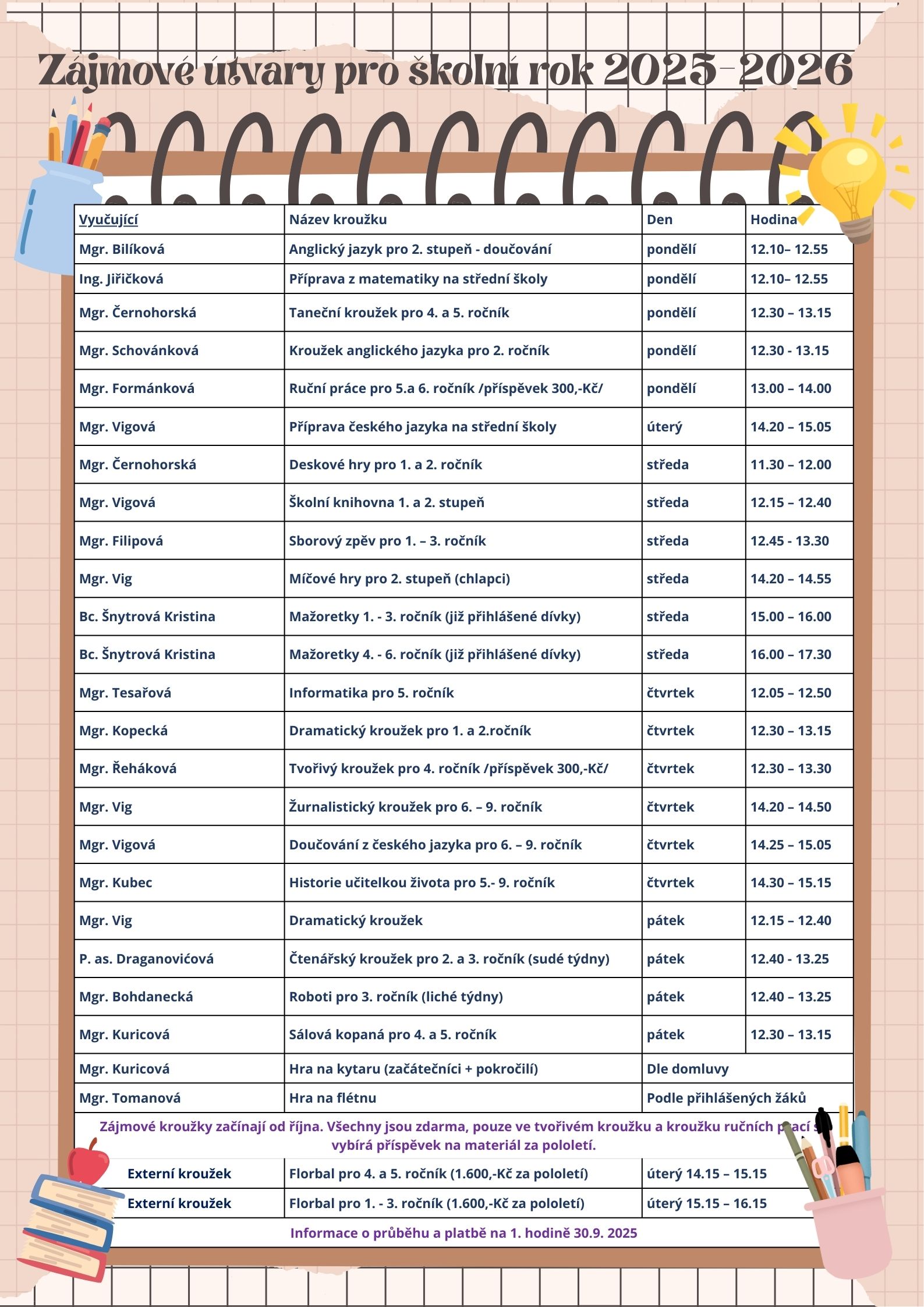 Zájmové útvary pro školní rok 2025-2026